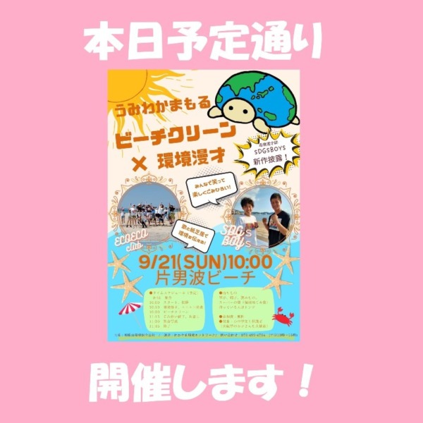 ★11/23『うみわかまもるビーチクリーン』in 片男波ビーチ★